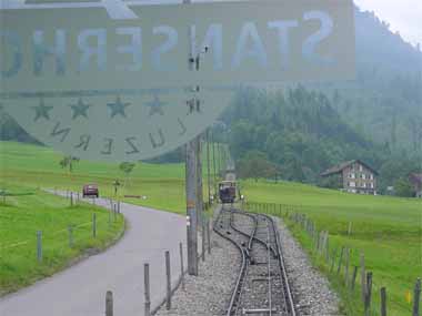 Blick auf unser Ferienhaus, Seilbahn zum Stanserhorn