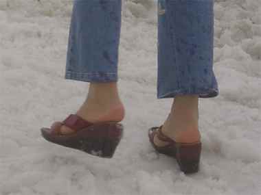 Die Füsse einer gut ausgerüsteten Asiatin.